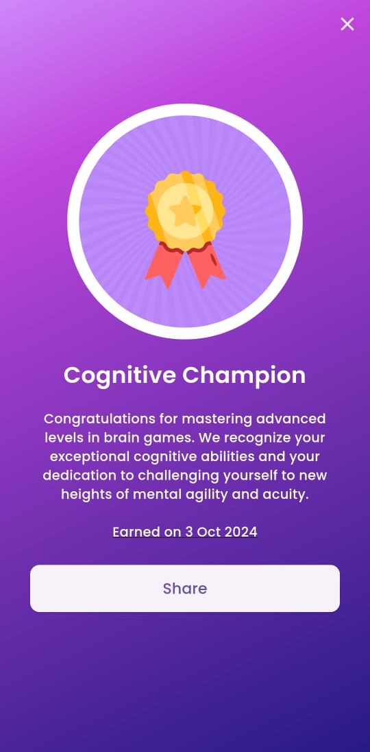 Find a minimum of 2 and a maximum of 5 words in the Word Wizard game to earn the "Cognitive Champion" reward, rewarding your brain training and vocabulary skills.