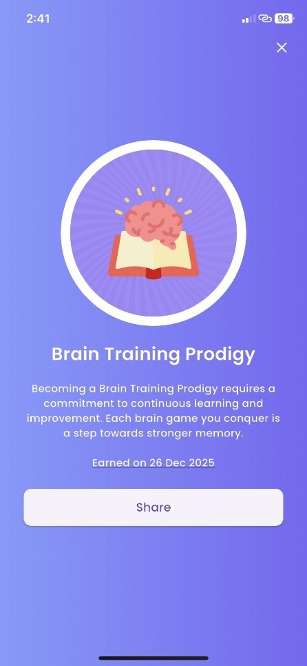 Achieve a score of 1024 in the 2048 game to earn the "Brain Training Prodigy" reward. You can share the reward with friends to celebrate your cognitive skills and progress.