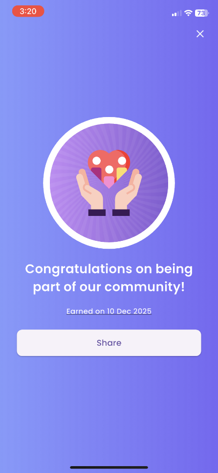 On first-time login with a new account, users receive the ‘Welcome to the Community’ reward. It appears after 10 minutes, or via push notification if the app is closed.