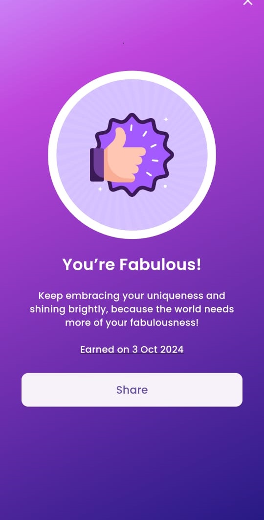 The "You're Fabulous" reward is awarded when a user creates their own workout template. They can customize their daily workout through the "Personalize" button on the workout page.