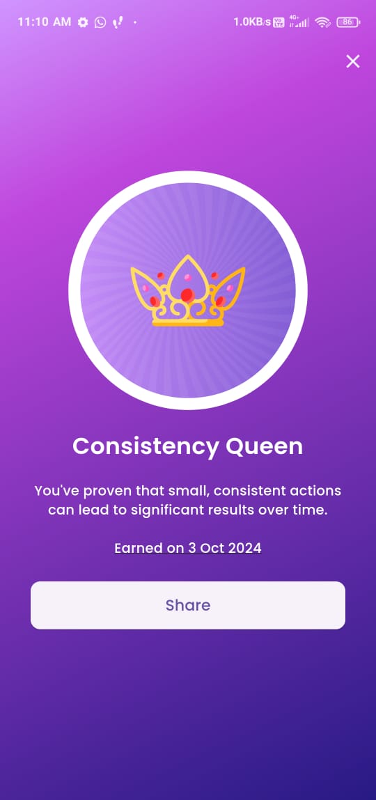Stick to the same workout template for nearly 3 weeks to earn the "Consistency" reward, recognizing your dedication and motivating you to maintain a stable, focused fitness approach.