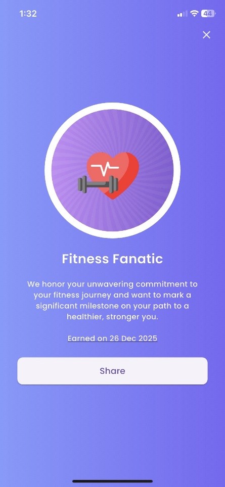 Complete a workout every day for 14 consecutive days at a similar time each day to earn the "Fitness Fanatic" reward, motivating you to stay committed and push your fitness consistency to the next level.