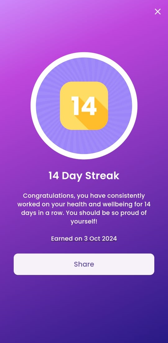 Complete a workout daily for 14 consecutive days to earn the "14 Day Streak" reward, encouraging you to sustain your fitness momentum and build a strong workout habit.