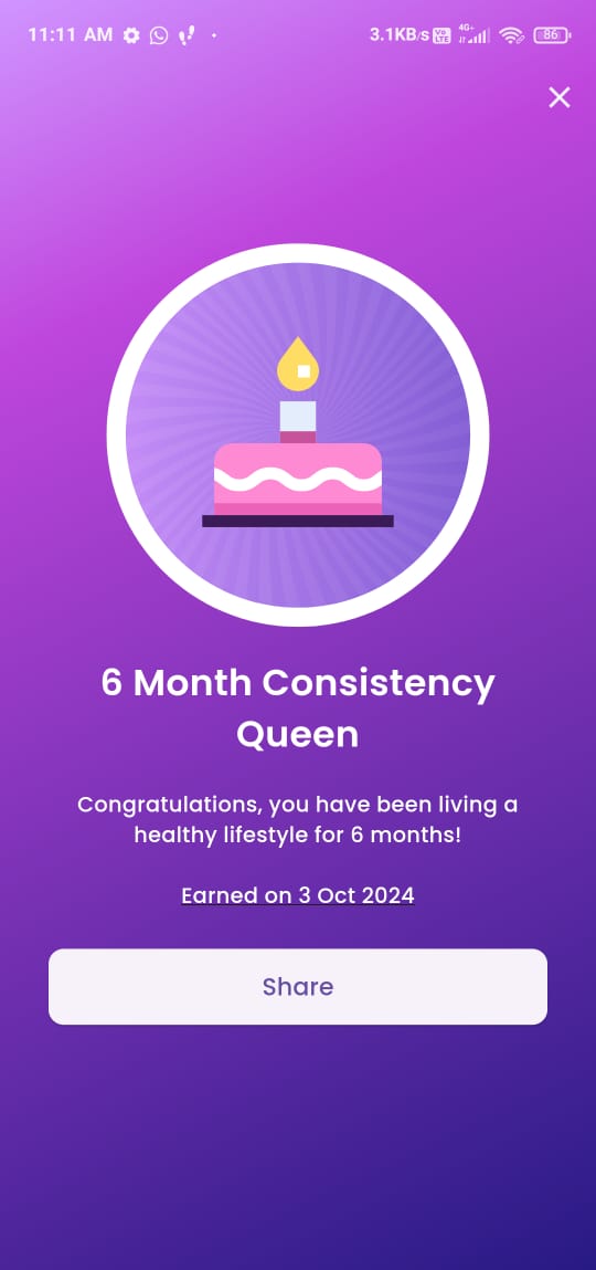 Achieve daily workouts for six consecutive months to earn the "6 Month Consistency Queen" reward, recognizing your commitment and motivating you to maintain your healthy fitness habits.
