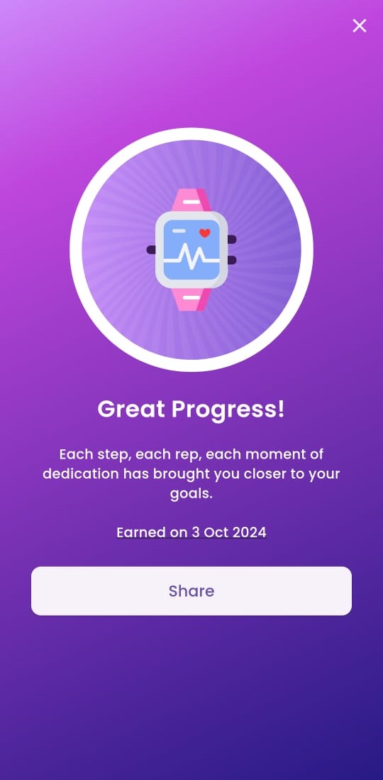 Achieve at least 80% completion of your workout template over a two-week span to earn the "Great Progress" reward, encouraging you to maintain your workout routine and reach your fitness objectives.