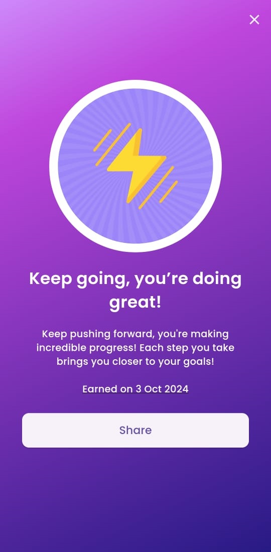 Complete at least 7 exercises in your chosen workout template to earn the "Keep Going, You're Doing Great" reward, motivating you to stay dedicated and engaged in your fitness journey.